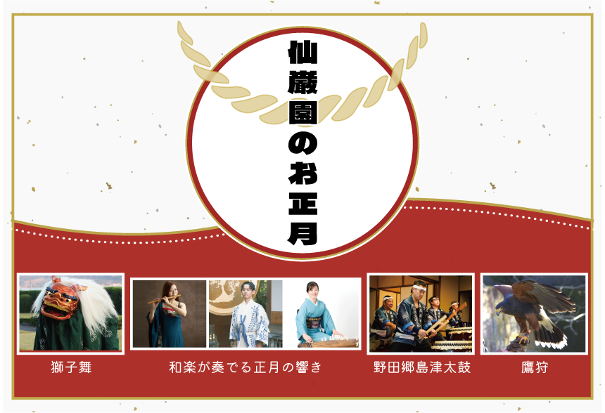 菊まつり期間中、仙巌園では、日本の伝統芸能をご覧いただける行催事を開催します。11月15日には、和楽の演奏と獅子舞の披露…[詳しく→]