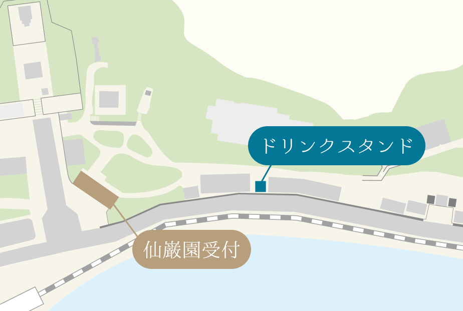 新店舗「ドリンクスタンド」オープンのお知らせ 2026/01/08 鹿児島県産の素材や旬の食材を使用し、寒い季節にお楽しみいただける温かいドリンクを中心としたラインナップをご用意しました。 園内散策の合間に、ほっと一息つける一杯をお楽しみください。 店舗情報 開店日|2026年1月30日(金) 営業時間|9:00~17:00 ※16:50オーダーストップ 販売メニュー(税込) 桜島溶岩焙煎珈琲 500円桜島溶岩プレートで焙煎した、オリジナル珈琲です。 枕崎産 島津紅茶 600円仙巌園限定。香り豊かな紅茶です。 知覧産 緑茶 400円煎れたてを提供いたします。 入来産 金柑 600円金柑の果肉もあわせてお楽しみいただけます。 屋久島産 たんかん 600円旬の食材。糖度が高く、爽やかな香りが特徴です。 アルコールメニュー(税込) 薩摩GOLD(ビール) 1,000円南薩摩産の黄金千貫を使用しています。 思無邪(芋焼酎) 700円仙巌園限定。 ナガサワワイン 800円程よい酸味と繊細な風味が特徴です。 仙巌園へお越しの際は、「ドリンクスタンド」へお立ち寄りください🥤 ドリンクスタンドについて
