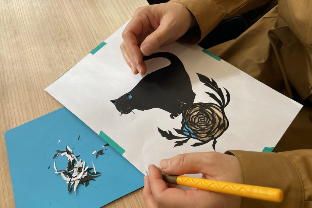 にゃんとも可愛い「切り絵」の作成体験を初開催