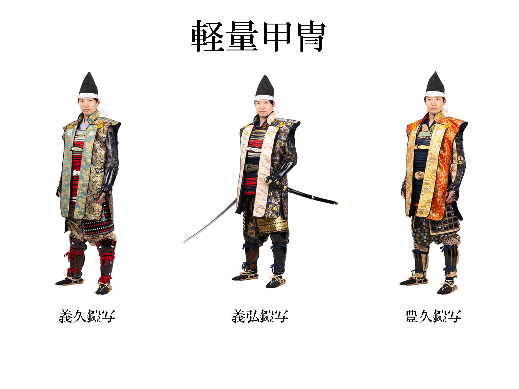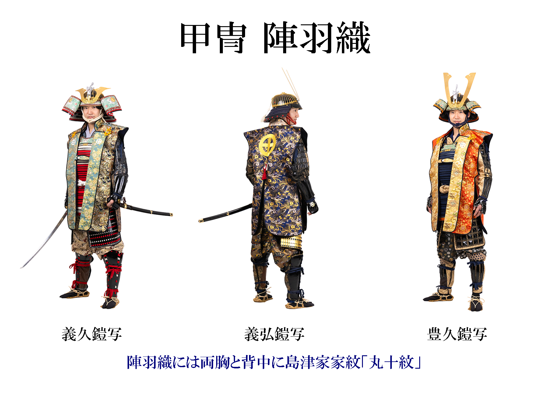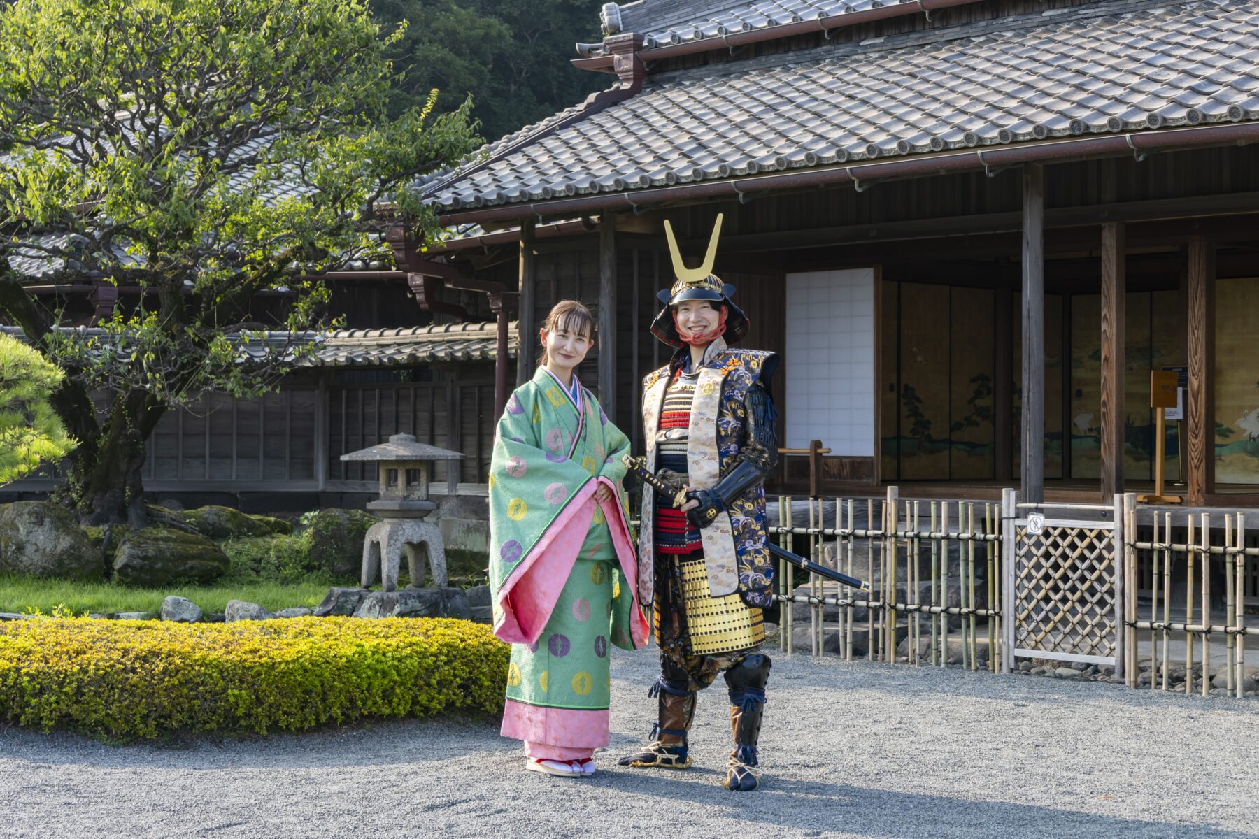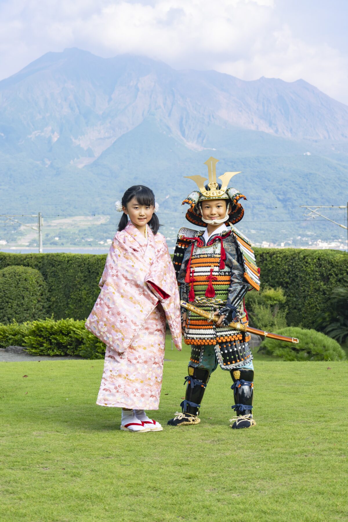 着付・着装体験 着付・着装 島津家別邸の歴史に寄りそう色とりどりの鎧兜と衣装歴代甲冑や武家の正装である直垂、小袖五衣、水干そして伝統工芸品・大島紬をご用意いたしました。伝統的な衣装を身にまとい、歴史ある大名庭園を散策しませんか。専門のスタッフによる写真撮影もご利用いただけます。(有料) 体験ご案内※ 価格は税込料金です。※体験時間には着付・着装時間も含まれます※ カメラマンによる撮影・写真データ送付は、別途料金¥ 3,000 がかかります。 ご予約ページへ 甲冑着装 小袖五衣 直垂 大島紬 水干 女児着物 甲冑着装 島津家伝来の収蔵品などをもとに再現された歴代の代表的な甲冑をご用意。武士の気概と威厳を感じる特別な陣羽織や雅な烏帽子を着合わせて豪華で軽量な装いの体験もお楽しみいただけます。※刀はフォトスタジオご利用のお客様のみご使用いただけます。※体験時間は着装時間も含みます。 【料金】(体験時間:60分)大人甲冑、陣羽織 ¥8,000大人軽量甲冑 ¥7,000※¹甲冑及び陣羽織はそれぞれ3種類ずつご用意。※²甲冑と陣羽織の着合わせは自由(写真は一例)です。 甲冑の種類,特徴 種類 大鎧,色調 兜,前立 壱 義久鎧写 紺 / 赤 / 白 狐・鍬形 弐 義弘鎧写 紺 / 赤 / 金 天衝 参 豊久鎧写 紺 / 朱 / 金 狐・長鍬形 体験別重量の目安 体験名 重量 備考 甲冑 約20kg 甲冑 陣羽織 約15kg 鎧は前胴のみ。兜を装着します。 軽量甲冑 約12kg 鎧は前胴のみ。烏帽子を着用します。 幼児 ¥4,500※甲冑及び陣羽織はそれぞれ2種類ずつご用意。 甲冑と陣羽織の着合わせは自由(写真は一例)です。 甲冑の種類,特徴 種類 大鎧,色調 兜,前立 壱 貴久鎧写 朱 / 白 / 若草 三鍬形 弐 義弘鎧写 赤 / 紺 / 金 狐・天衝 体験別重量の目安 体験名 重量 備考 甲冑 約10kg 甲冑 陣羽織 約 7kg 鎧は前胴のみ。兜を装着します。 軽量甲冑 約 5kg 鎧は前胴のみ。烏帽子を着用します。 稚児鎧 ¥4,500 (約 3kg)※甲冑は1種類のみです。 甲冑の種類,特徴 種類 大鎧,色調 兜,前立 忠重鎧写 朱 / 白 / 紺 丸十紋 ご予約ページへ 大人用(身長150~185cm、腹囲120cmまで) 幼児用(身長110~140cm) 稚児鎧(身長95~120cm) ※写真をクリックで拡大されます。 小袖五衣 (こそでいつつぎぬ) 五つの衣が重なっている様子が名前の由来となる小袖五衣は武家の女性の正装です。 仙巌園で毎年4月に行われる『曲水の宴』では女性参宴者が着用します。艶やかな色合いの五衣うちぎを身にまとい、優雅なひとときをお過ごしください。※体験時間は着付時間も含みます。 【料金】(体験時間)大人 ¥7 ,000 (60 分) ※身長 145~170cm 幼児 ¥4,500 (60 分) ※身長 95~140cm ご予約ページへ 直垂 (ひたたれ) 武家の正装として知られる「直垂」。仙巌園で毎年4月に行われる祭事「曲水の宴」では男性参宴者が着用します。 鎌倉以来の伝統を継ぐ島津家別邸にふさわしい衣装です。小袖五衣と一緒に体験されるとよりいっそう優雅な雰囲気に。※体験時間は着付時間も含みます。 【料金】(体験時間)¥6,000 (60分) ※身長150~185cm ご予約ページへ 大島紬 世界三大織物にも選ばれる「大島紬」。女性用は白と黒を基調とするお着物をご用意。男性用もございます。ご夫婦やご友人、ペアでの体験もおすすめです。上品な着物姿で過ごす散策の時間はふたりだけの特別な空間に。 【料金】(体験時間)¥6,000 (60 分) ※身長 男性:160~180cm 女性:140~170cm ご予約ページへ 水干 子どもたちが身に着けていた水干(すいかん)。絵物語の主人公のように元気はつらつな姿を仙巌園で。※体験時間は着付時間も含みます。 【料金】(体験時間)¥4,500 (60 分) ※身長 130~160cm ご予約ページへ 女児着物 華やかな着物が見た目にもとても愛らしく子どもの可愛さを一層引き立てます。七五三やひな祭りなど子どもの健やかな成長を願う機会にも最適です。※体験時間は着付時間も含みます。 【料金】(体験時間)¥4,500 (60 分) ※身長 95~140cm ご予約ページへ フォトスタジオ 特別な体験のひと時を専門のスタッフが記念撮影いたします。スタジオではお客様だけの空間で和傘などを使って華やかに。お庭では雄大な桜島や風情ある御殿を背景にした撮影も。写真は編集後、データをお送りいたします。 ※天候次第では野外での撮影ができない場合がございます。予めご了承ください。 【料金】¥3,000