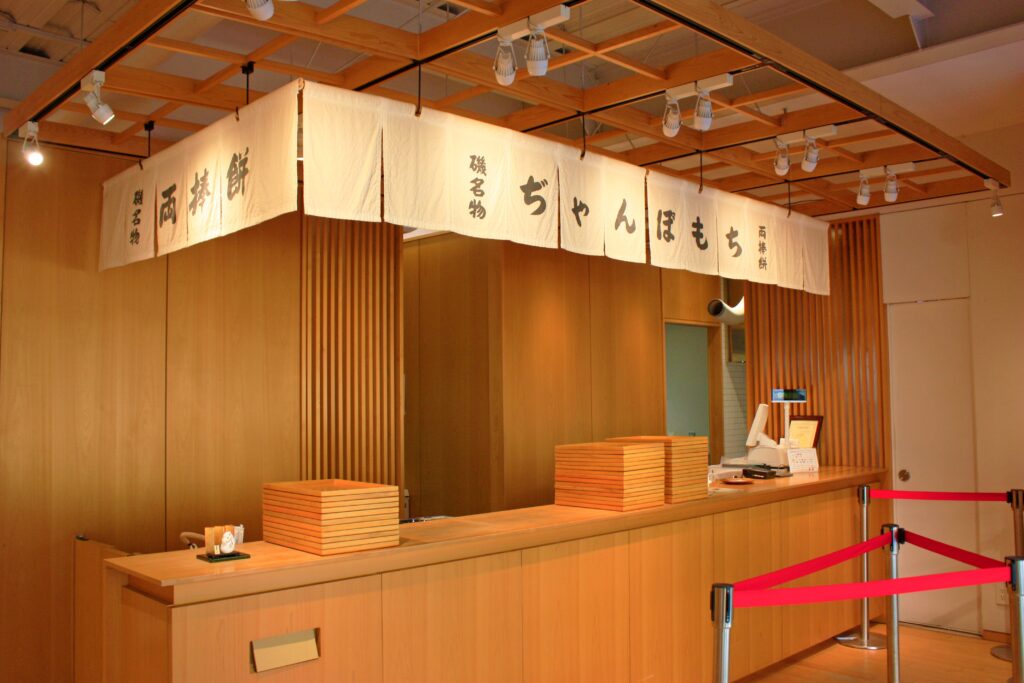 仙巌園の名物両棒餅(ぢゃんぼ餅)は、2本の串がささった一口大のお餅です。
